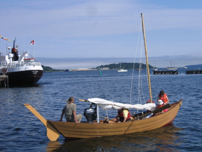 After much delay, we were delighted to finally step the mast in that big Fortune Bay dory completed earlier this month. Then Jay joined the owner, his daughter and grandchildren for a little test sail in Lunenburg harbour.