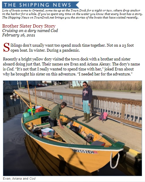 To read more about their story, check out the article that was written by Bernie Harberts and interviewed and photographed by Keith Smith in the "Town Dock" in Oriental, NC: https://towndock.net/shippingnews/brother-sister-dory-story