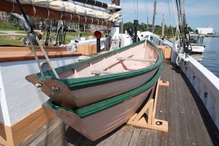 The dories on the Amazing Schooner CALANOVA. They launch in an instant and can keep the seas.