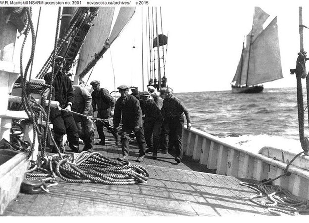 A pick-up race into harbour between the schooners CALANOVA and the GERTRUDE THEBAUD. The famous THEBAUD never beat the CALANOVA in a match race. Nope, never happened.