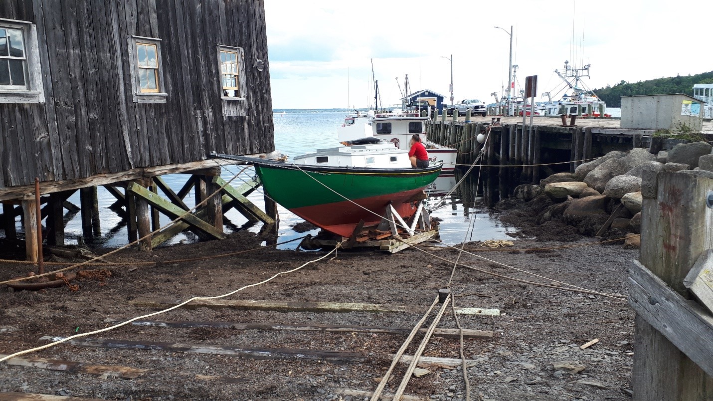 Launching the Amazing CALANOVA at the Dory Shop. Waiting for the moon to do the heavy lifting. Tide coming in at the Center of Lunenburg’s “Trailing Edge Technologies” at the eastern end of Bluenose Drive and the working waterfront.